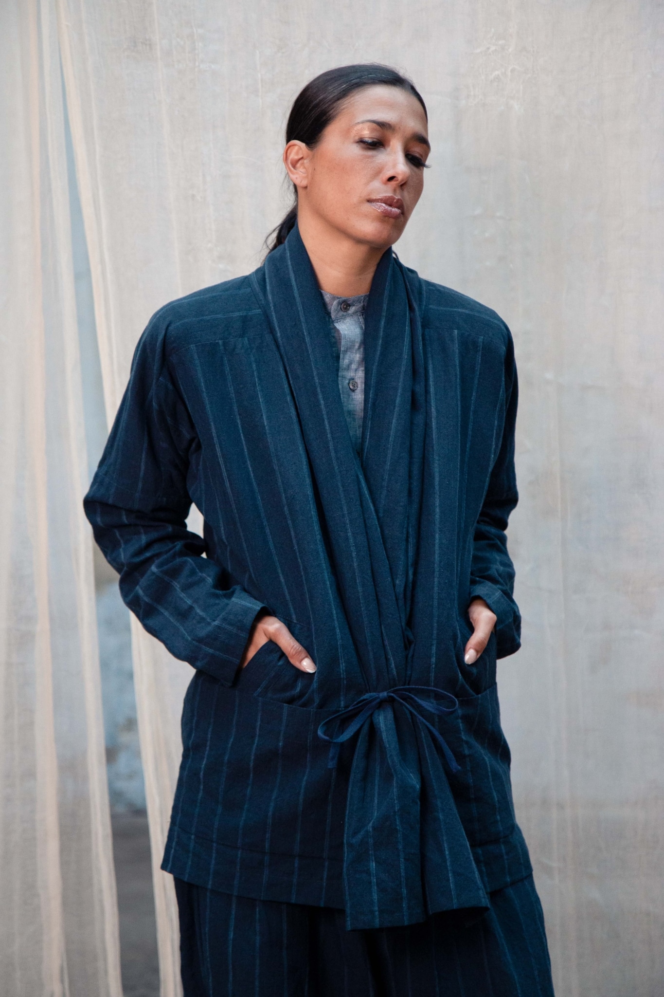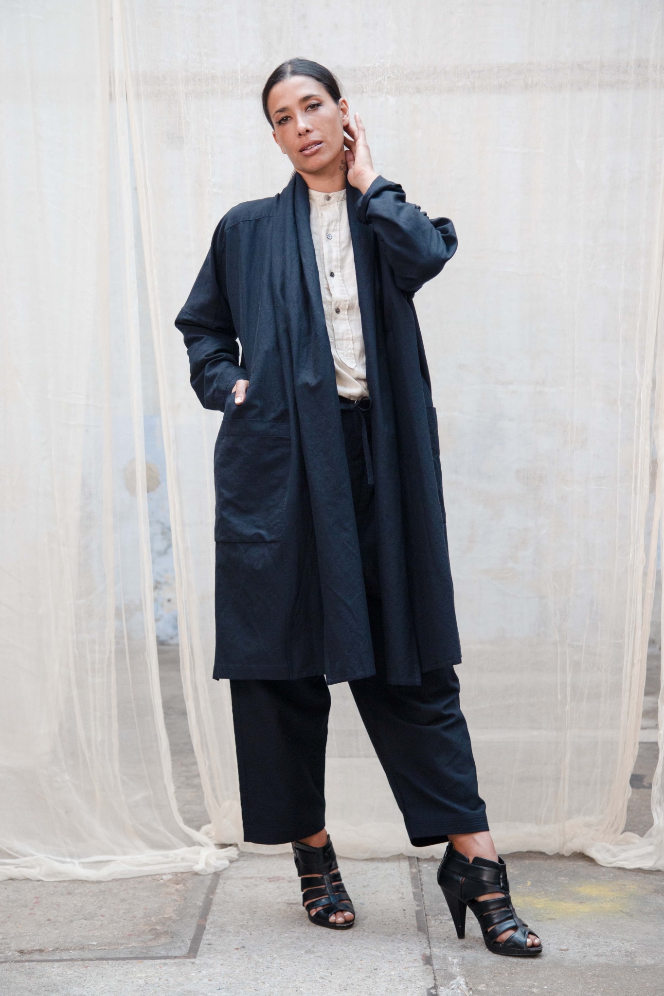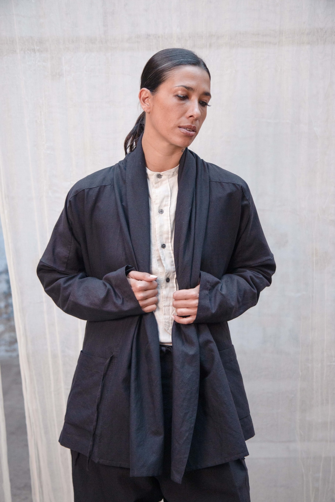 LONGUE VESTE KIMONO COTON/LAINE/LIN