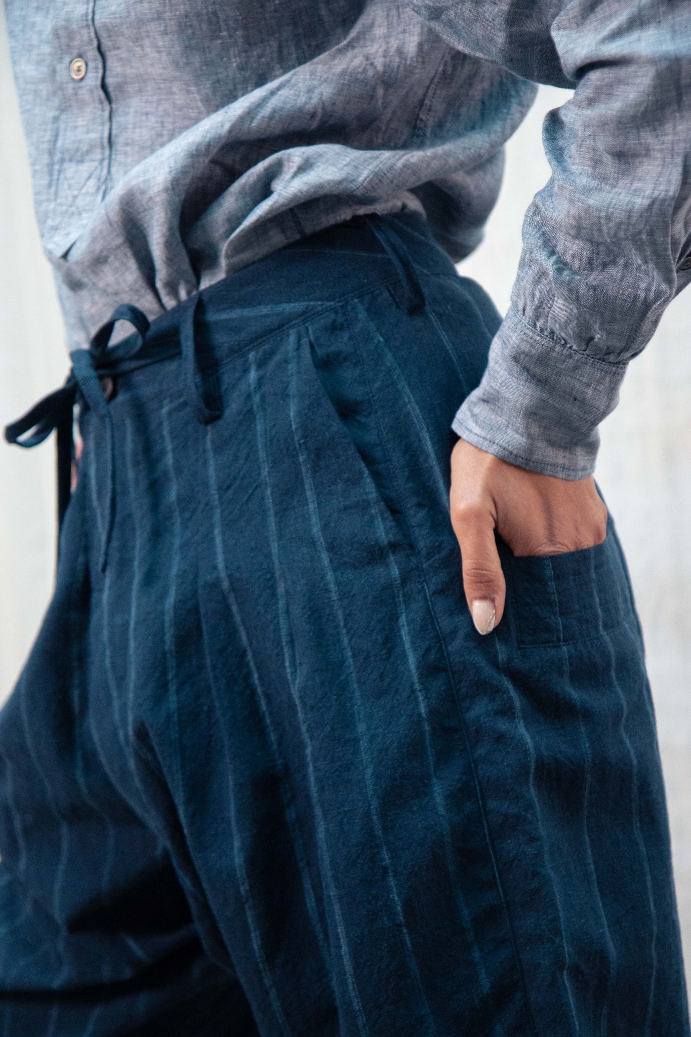 Le pantalon Okinawa s'inscrit dans notre philosophie de "Soft Tailoring".